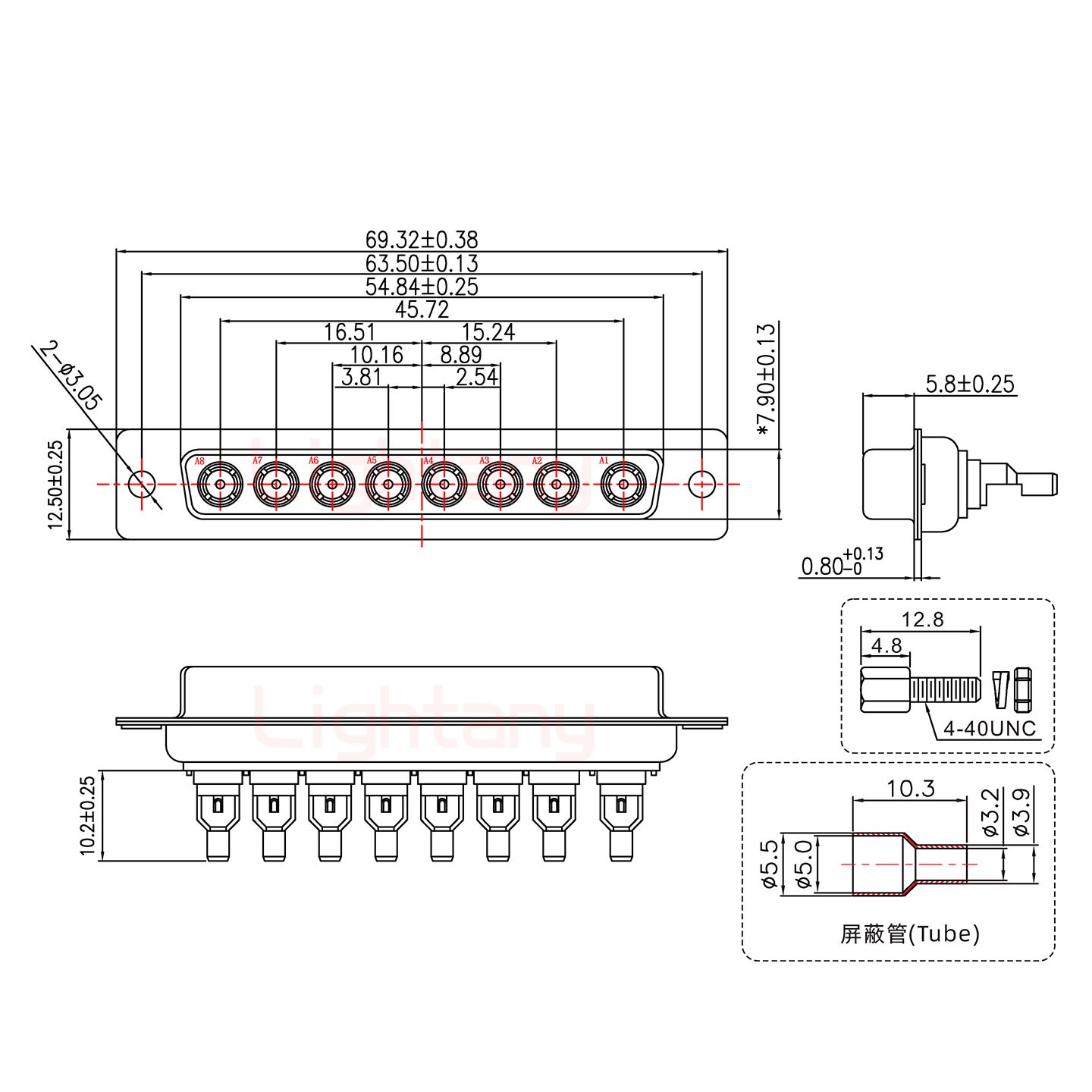 8W8母焊線式/配螺絲螺母/射頻同軸50歐姆