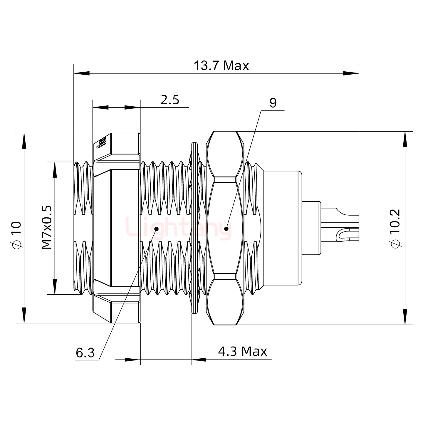 17W2母焊線式/配螺絲螺母/射頻同軸50歐姆